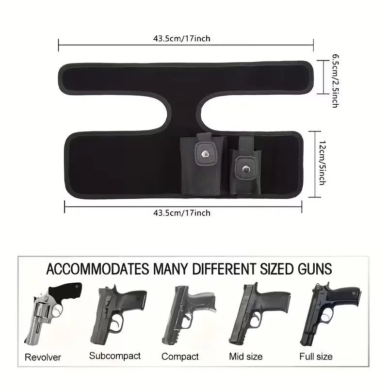 A puha, mégis tartós anyag megakadályozza a bőr kidörzsölődését hosszú viselés esetén, az állítható rögzítés pedig lehetővé teszi a különböző lábméretekhez való igazítást. Az univerzális kialakítás kompatibilis a legtöbb kompakt és szubkompakt pisztollyal, valamint a kis revolverekkel.